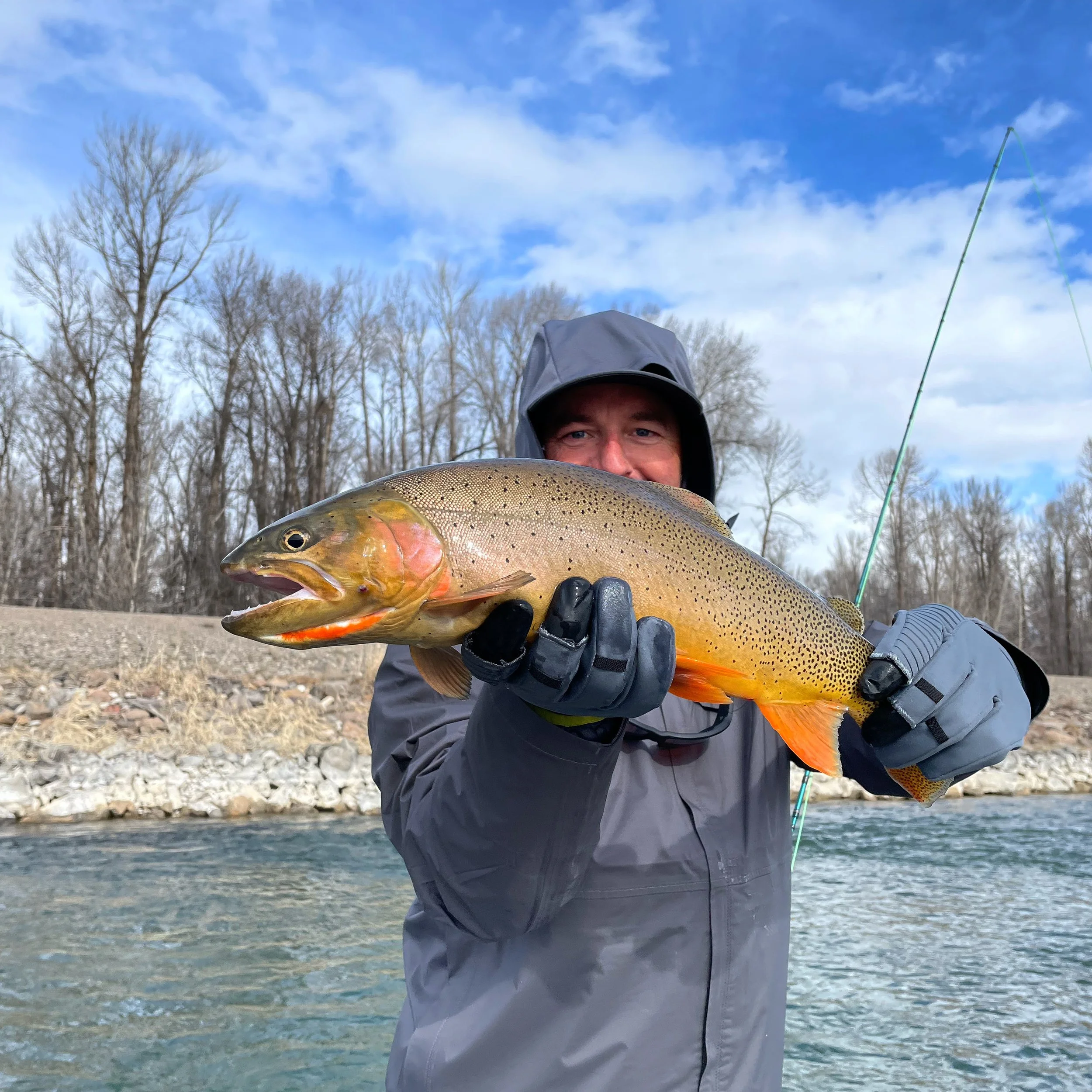 Winter fishing the south fork of the Snake River is a unique experience because the river feels empty compared to the traffic it tends to attract during the spring/summer/fall months. Flows average 900 cfs through the winter months, allowing plenty of wading access to winter runs or pools. The two main techniques I would stick to would be nymphing and streamer fishing, but keep your eyes peeled for the sneaky rising fish at the edges of small shallow water adjacent to slower wintering holes.